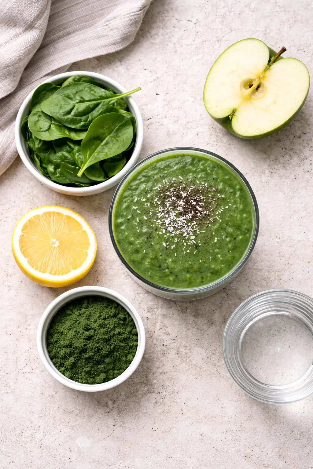 Grön Smoothie med Spirulina, Spenat och Äpple
