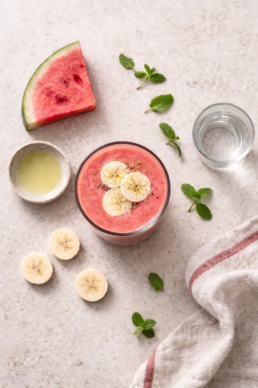 Enkel Smoothie med Vattenmelon, Banan och Mynta