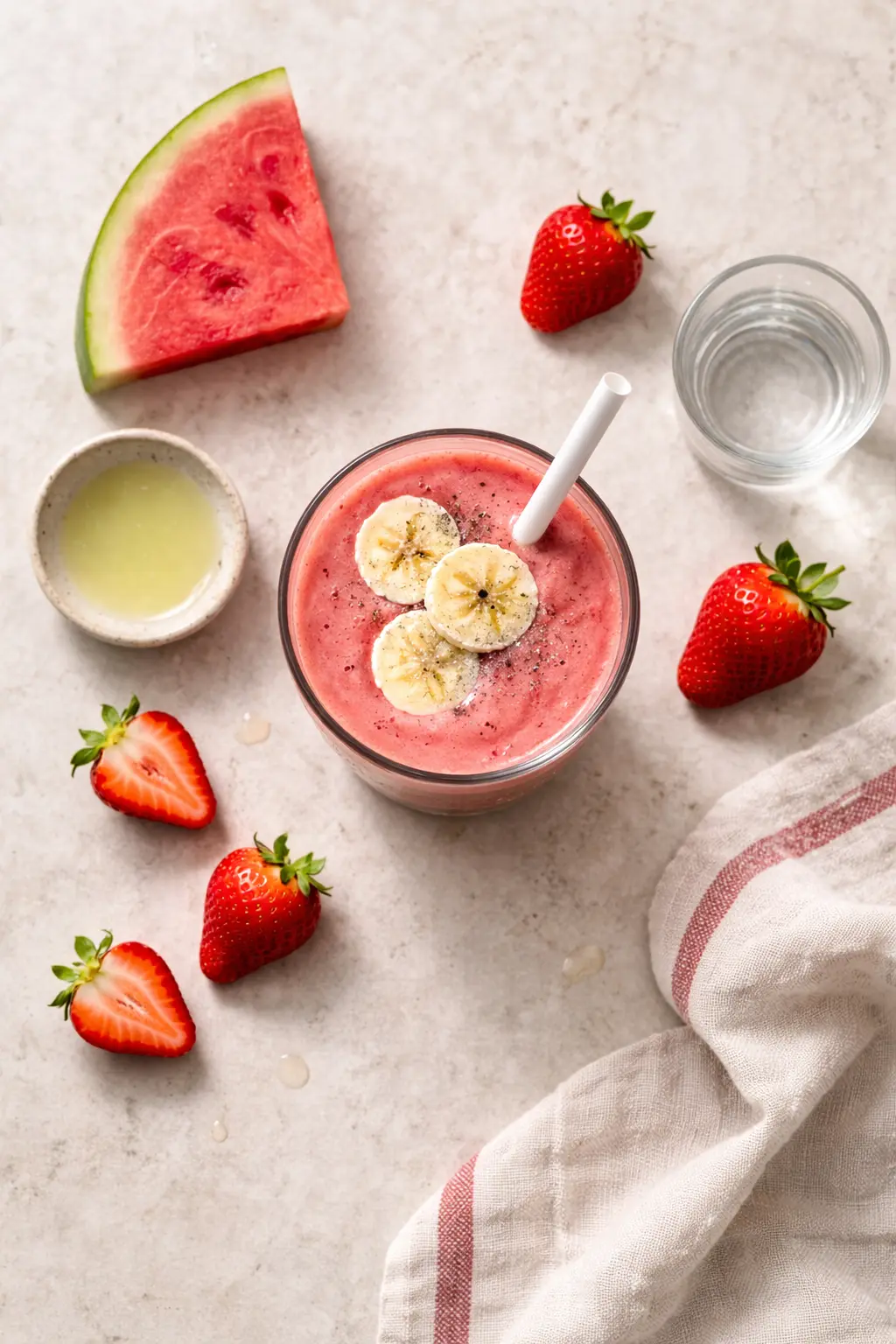 Enkel Smoothie med Vattenmelon, Banan och Jordgubbar
