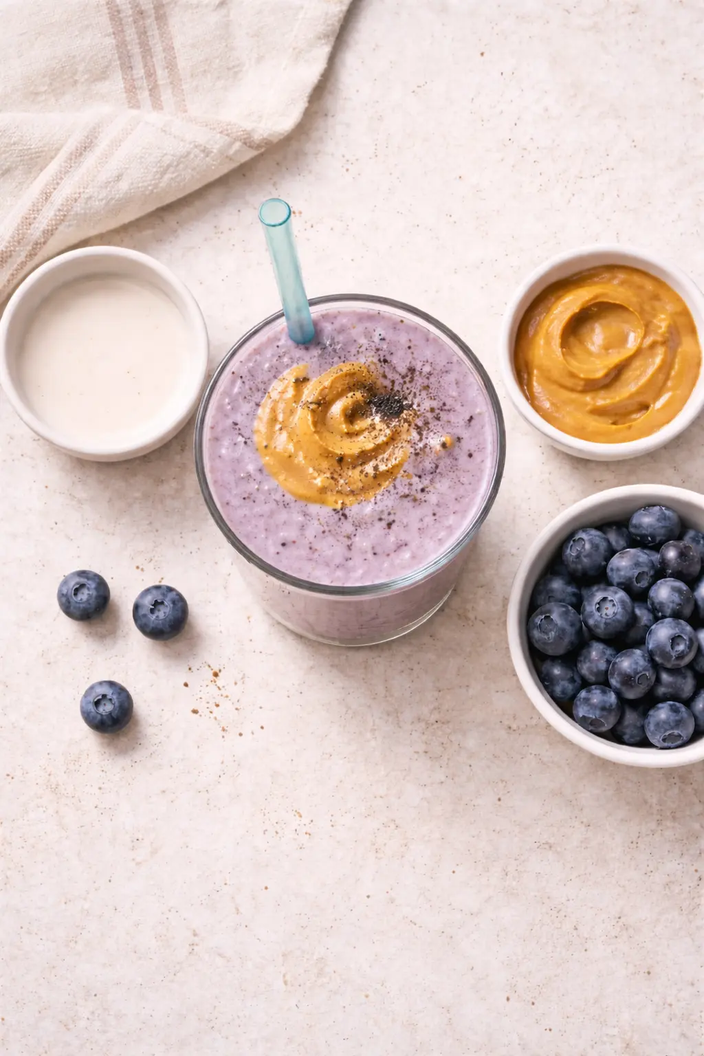 Enkel Smoothie med Jordnötssmör, Blåbär och Banan