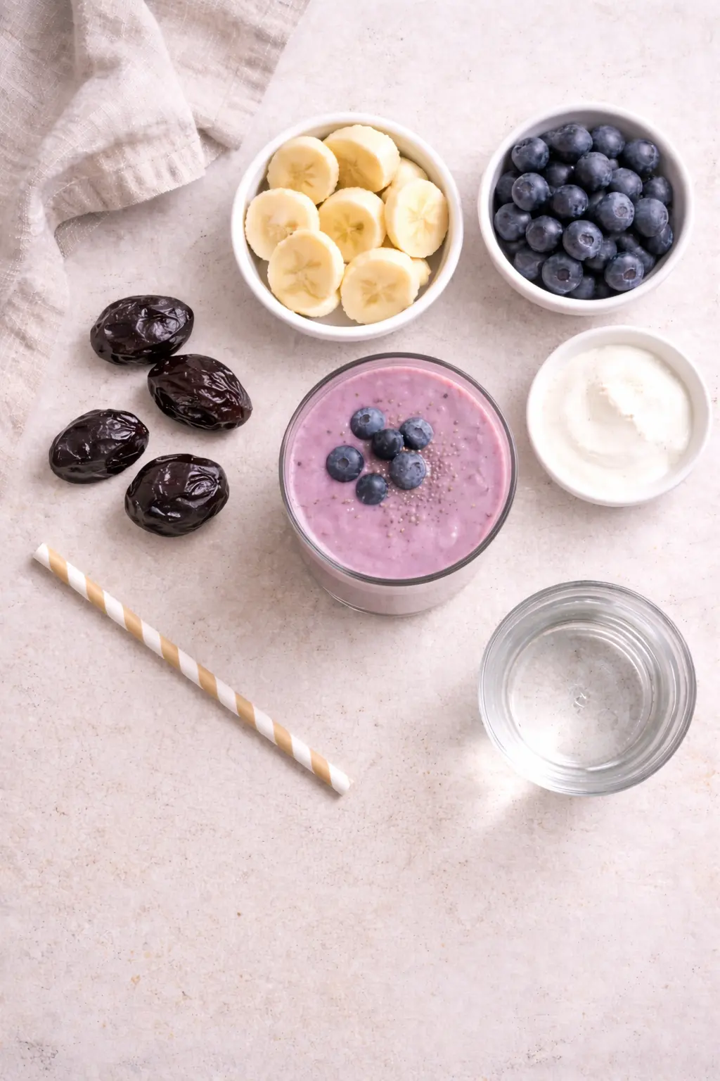 Enkel Smoothie med Katrinplommon, Banan och Blåbär
