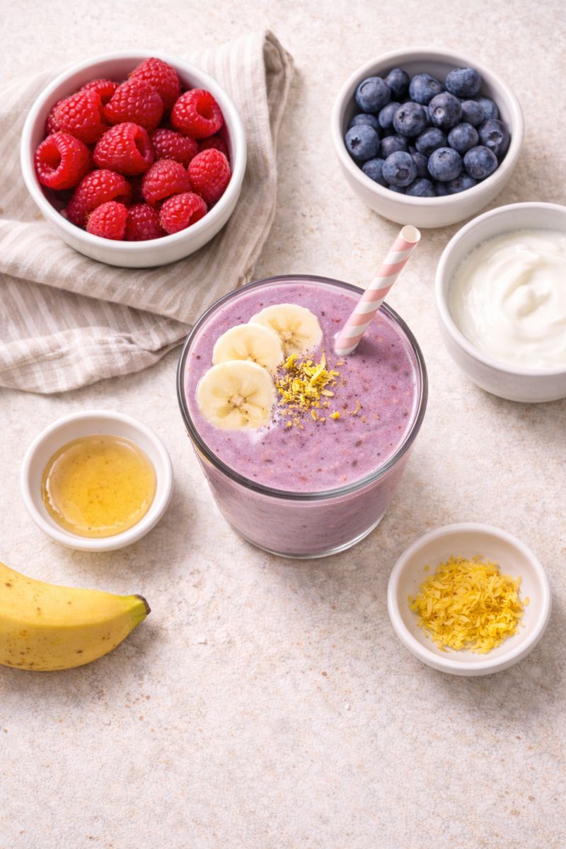 Antioxidativ Smoothie med Hallon, Yoghurt och Blåbär