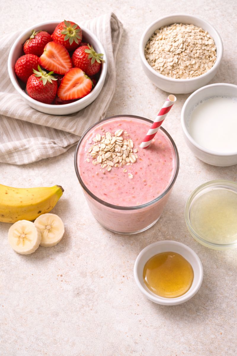 God Smoothie med Jordgubbar, Havregryn och Mjölk