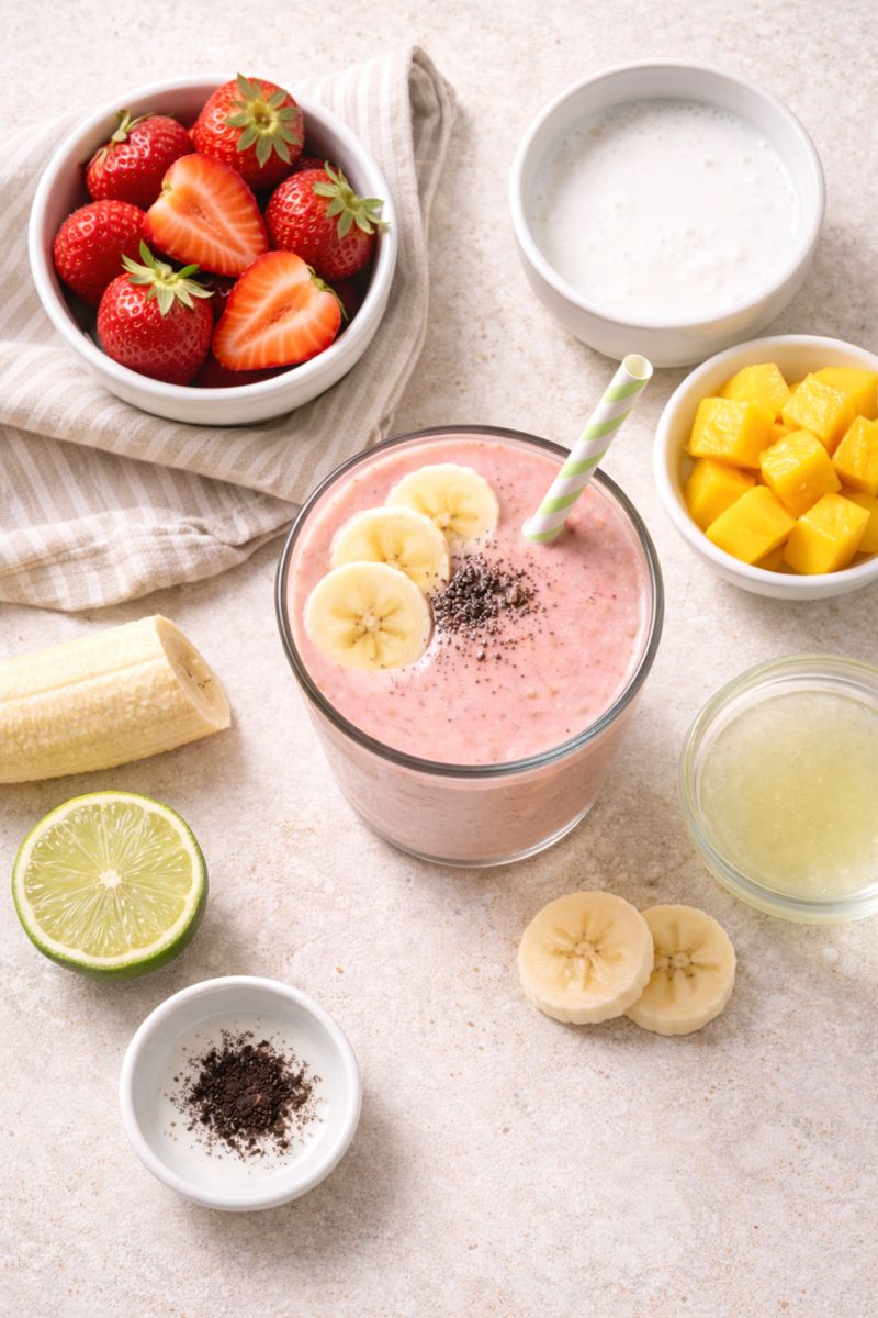 Kaloririk Smoothie med Jordgubbar, Kokosmjölk och Mango