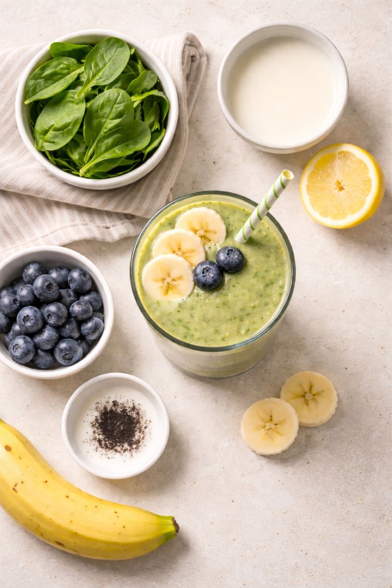 Nyttig Smoothie med Spenat, Blåbär och Mandelmjölk