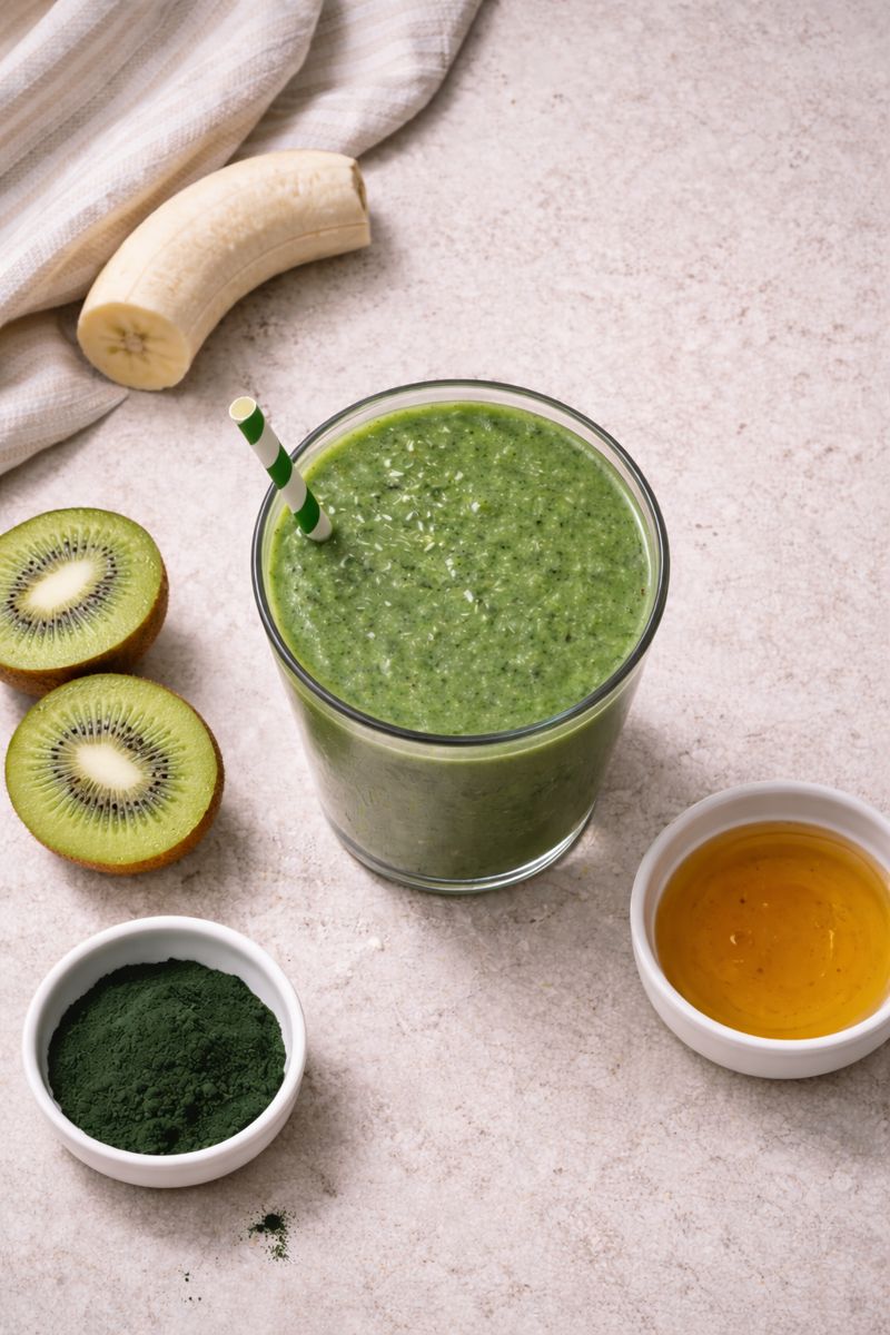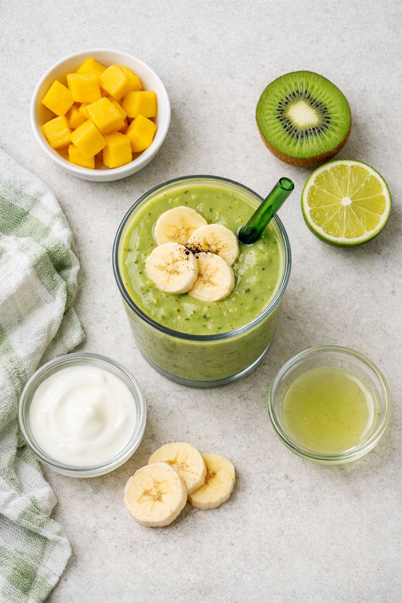 Kiwi är en frisk och syrlig frukt som passar utmärkt i frukostar, särskilt i smoothies och frukostbowls. Den ger både en tydlig fruktig smak och en uppfriskande syra som balanserar sötare ingredienser som banan och mango. Kiwi innehåller dessutom mycket C-vitamin och passar därför bra i frukostar som ska kännas både lätta och näringsrika.