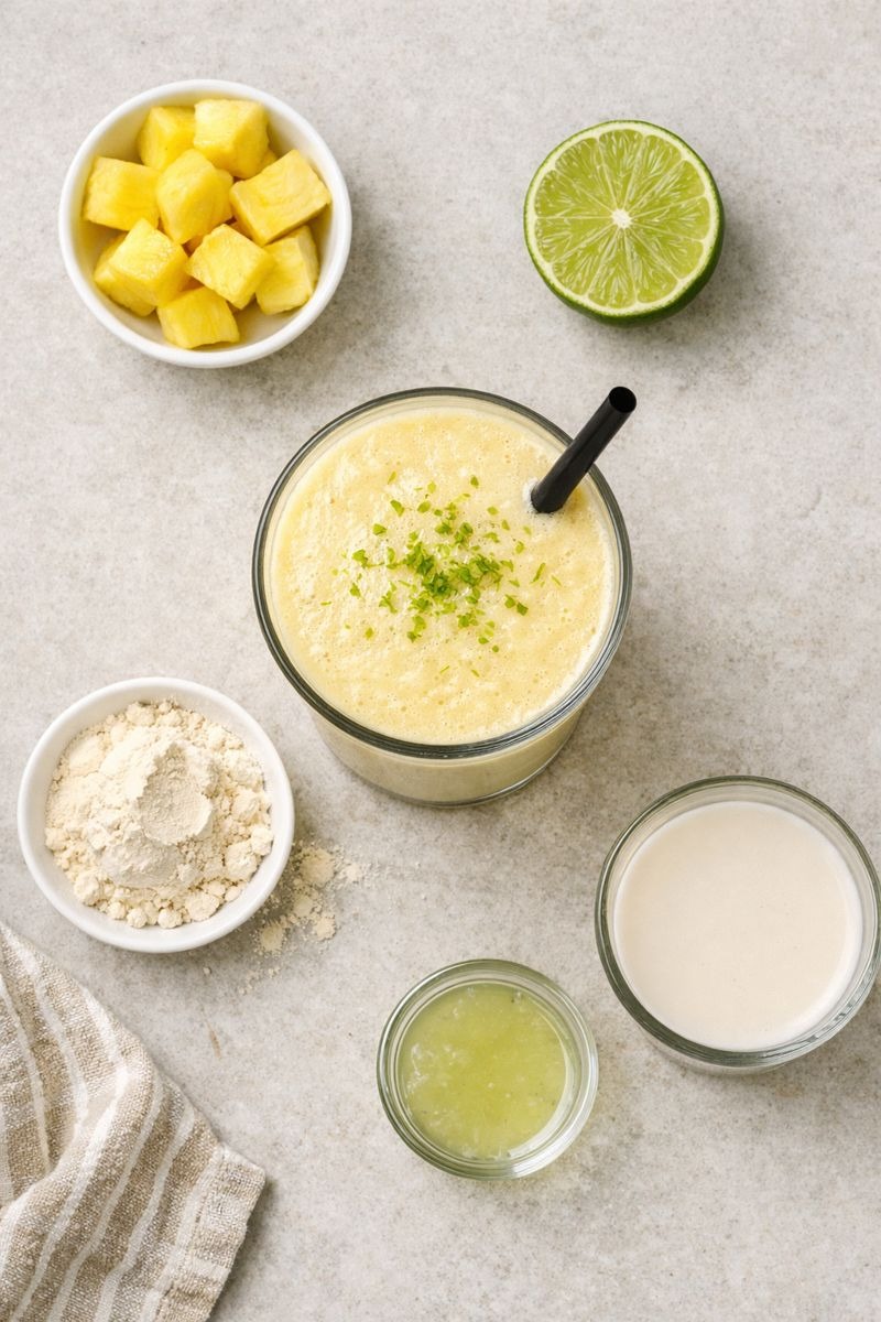 Kaloririk Smoothie med Kokosmjölk, Ananas och Proteinpulver