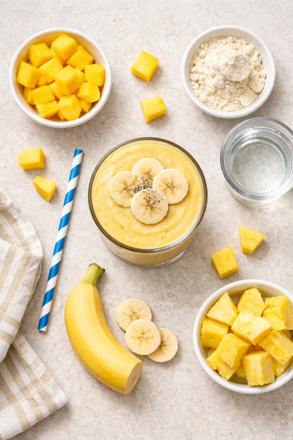 God Smoothie med Mango, Ananas, Banan och Proteinpulver