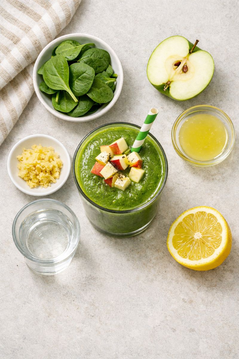 Grön Smoothie med Ingefära, Spenat och Äpple