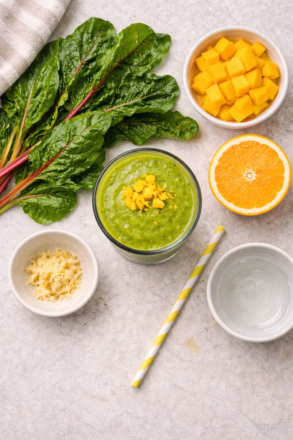 Mangold är en bladgrönsak som fungerar överraskande bra i smoothies. Den har en mild och lätt jordig smak som gör att den passar bra tillsammans med frukt utan att dominera smaken. I smoothies används mangold ofta som ett alternativ till spenat och bidrar med både färg, fiber och näring. Den passar särskilt bra i gröna smoothies där den kombineras med frukt som banan, mango eller äpple för att ge en balanserad och fräsch smak.